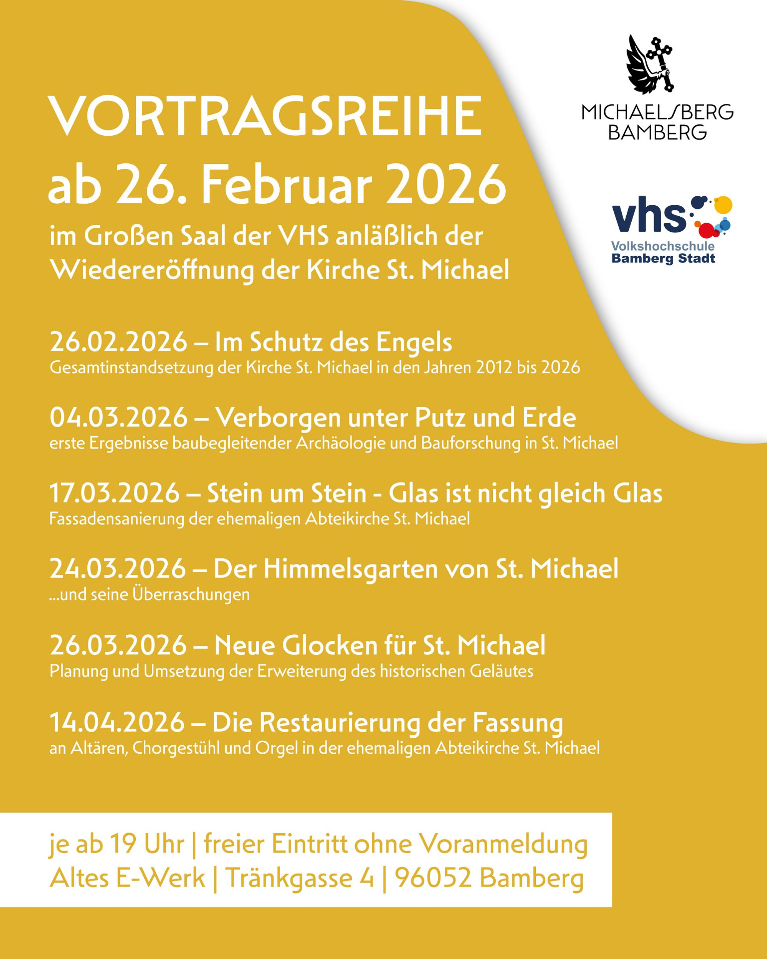 Am 3. Adventssonntag, dem 14. Dezember 2025, erklingt erstmals das auf elf Glocken erweiterte Geläute der ehemaligen Klosterkirche St. Michael in Bamberg. Zwischen 16:30 und 19:30 Uhr werden im Rahmen einer öffentlichen Vorführung zunächst alle Glocken einzeln geläutet. Im Anschluss erklingen die Geläute von Dachreiter sowie Nord- und Südturm im...